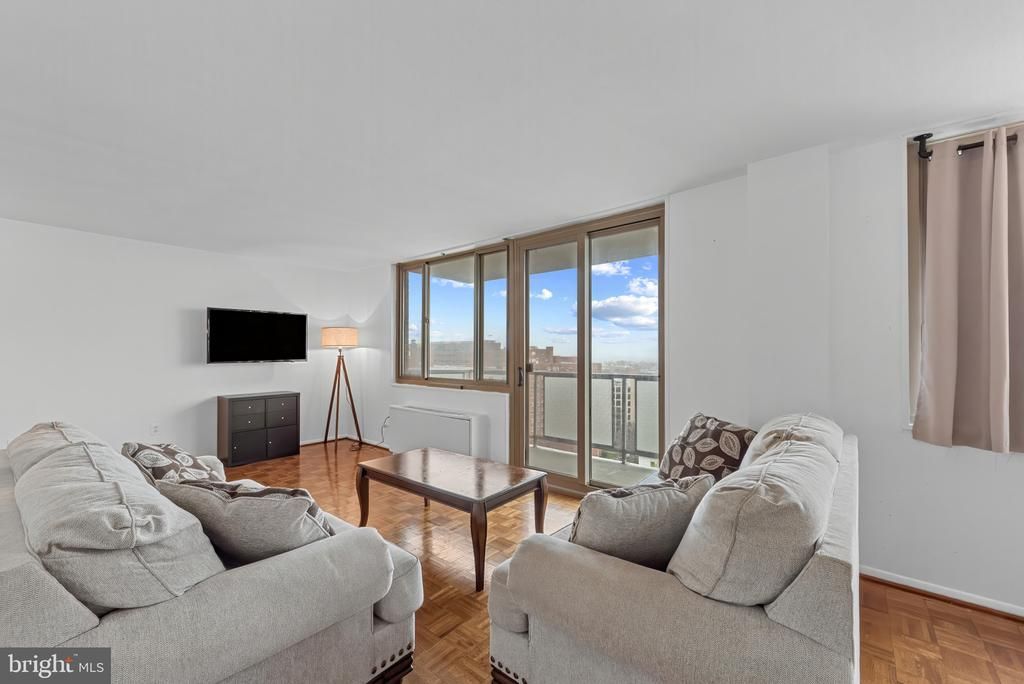 Enjoy soaring panoramic views from this fully renovated 2BR/2BA corner unit! Enjoy cooking in your updated kitchen, boasting SS appliances, new cabinetry, countertops, & backsplash. Gorgeous wood floors throughout, balcony, & flooded w/ natural light. Spacious walk-in closet, updated bath sinks, fixtures, & toilets. **Condo fee includes heating, cooling, electric, & water** Garage parking is available for rent. Just steps from JHU shuttle & 24hour secure building.