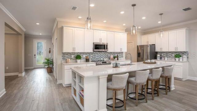 Pre-Construction. To be built. Refined design and timeless comfort come together in this stunning Huntington in Palm Coast, one of Florida's most captivating coastal settings, perfectly positioned between St. Augustine and Daytona Beach. Here, natural beauty and modern convenience meet effortlessly, with access to pristine beaches, world-class golf, and scenic nature preserves that define the area's relaxed yet vibrant lifestyle. Striking curb appeal sets the tone, leading into an interior that blends style and functionality with ease. Just off the foyer, a versatile dining space lends itself beautifully to formal gatherings, a private office, or a quiet den.The main living area unfolds with an open-concept layout, enhanced by 9'4 flat ceilings, elegant crown molding, and an abundance of natural light that fills the space with warmth. At the center, the kitchen is thoughtfully designed with quartz countertops, a large island, tile backsplash, soft-close cabinets, and stainless steel appliances, all flowing seamlessly into the great room. Triple-panel sliding doors extend the living space outdoors to an expansive covered lanai, creating a seamless connection between indoor comfort and open-air relaxation.Tucked away for privacy, the owner's suite serves as a peaceful retreat, complete with a spacious walk-in closet and a beautifully appointed bath featuring an oversized tiled shower with enclosure and quartz-topped dual vanities. Three additional bedrooms are positioned on the opposite side of the home, along with two full baths, creating a well-balanced layout suited for both everyday living and hosting guests.EVP flooring runs throughout the main living areas, adding durability and a polished finish, while plush carpeting in the bedrooms brings a layer of comfort. Cordless blinds are installed throughout, and the oversized three-car garage includes a dedicated workshop area for added flexibility. Architectural shingles and professionally designed landscaping further enhance the home's exterior presence.Modern living is elevated with integrated smart home features, including a Ring Video Doorbell, Smart Thermostat, Keyless Entry Door Lock, and Deako Switches, delivering both convenience and peace of mind.In a location where you can truly shape your lifestyle without HOA or CDD restrictions, this home delivers the freedom to design and enjoy your space your way. Backed by a full builder warranty, the Huntington captures the essence of refined Florida living-blending craftsmanship, comfort, and the unmatched appeal of Palm Coast's coastal charm.
