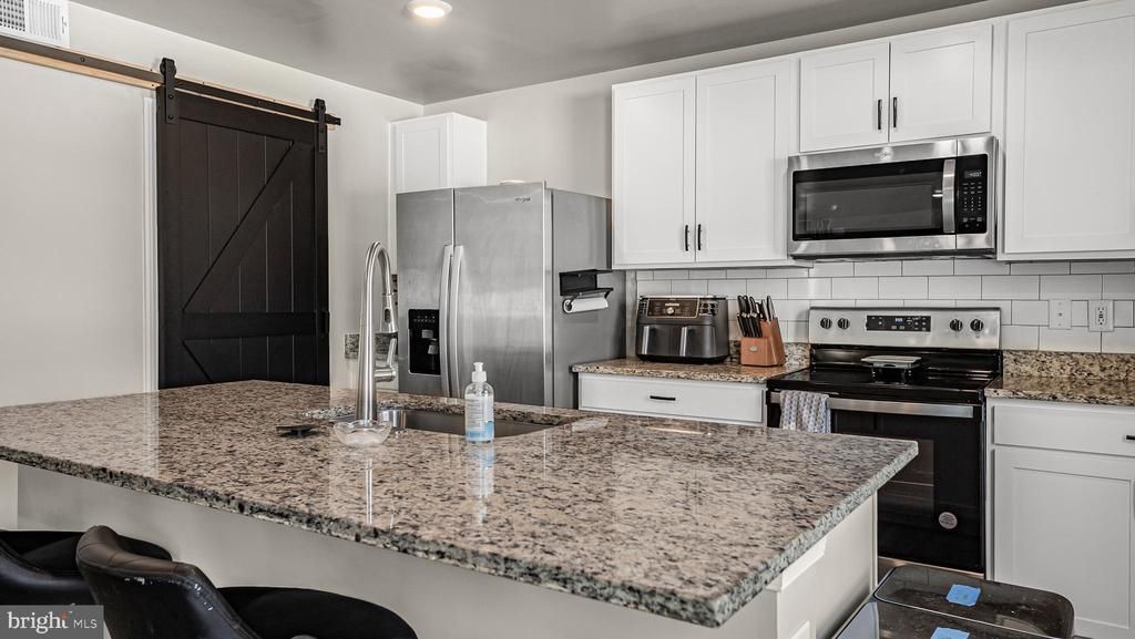 Welcome home! This beautifully maintained property offers an inviting open-concept main level featuring stainless steel appliances, granite countertops, and a stylish barn door leading to the pantry. The upper level boasts a spacious landing, three generously sized bedrooms, and a convenient walk-in laundry area with additional storage. The primary suite includes a large walk-in closet and dual vanities. Natural light fills the home throughout. The basement provides a recreation area with potential for an additional bonus room. Enjoy outdoor living in the fenced backyard with a deck perfect for relaxing or entertaining. Conveniently located near shopping, dining, grocery stores, and major commuter routes.