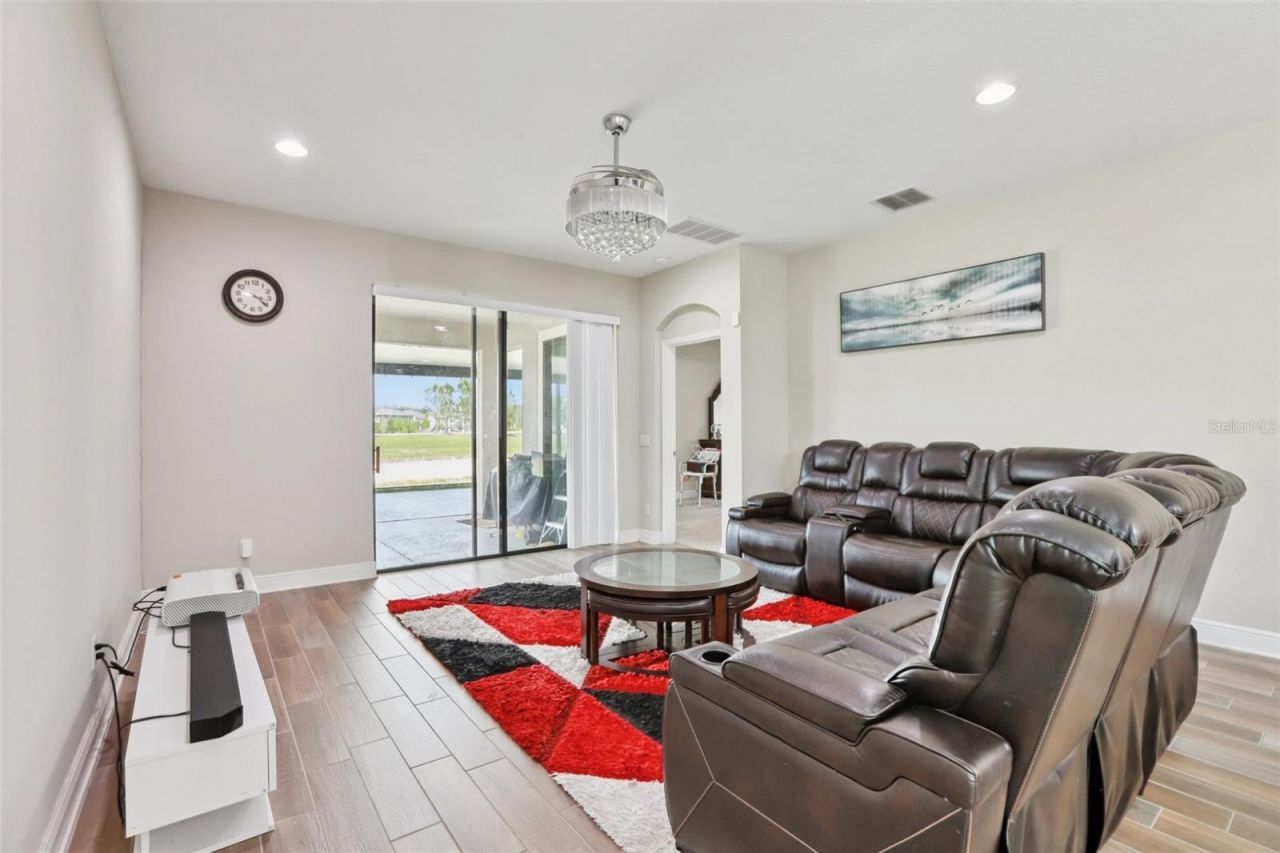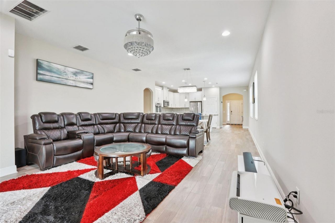One or more photo(s) has been virtually staged. Nestled within the exclusive gated enclave of Winsome Manor at K-Bar Ranch, this lovingly maintained 2,966 sq. ft. residence offers a sophisticated blend of luxury, sustainability, and peace of mind. At the center of the home is a chef-inspired kitchen featuring gleaming quartz countertops, 42 cabinetry, double ovens, and a brand-new appliance suite-all overlooking an airy family room adorned with contemporary wood-look tile. The versatile split-level layout includes a massive main-floor primary retreat and a secluded upper-level guest suite with a bonus room, wet bar, and wine refrigerator. Beyond the fresh interior paint and dedicated home office, this home is engineered for resilience and efficiency with hurricane impact-resistant windows and doors and 26 solar panels that significantly reduce energy costs. Step outside to the extended, screened lanai with fresh epoxy flooring to enjoy breathtaking, unobstructed sunset views over the serene pond and conservation area. Roof & A/C new in 2018. Perfectly situated in the New Tampa/Wesley Chapel corridor, you are minutes from premier dining, top-tier medical facilities, and quick commutes to USF or downtown Tampa.