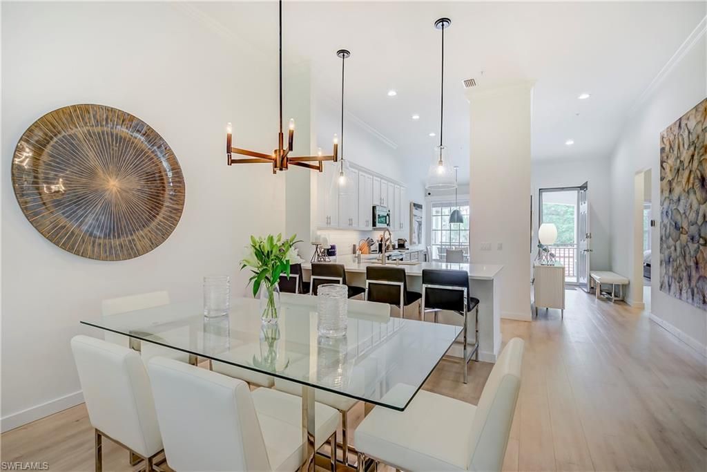 STOP—this is the one. Rare end-unit with extensive updates—one of the most compelling opportunities in Vasari with bundled golf included and no waitlist. This beautifully redesigned 2+Den, 2-bath second-floor residence offers privacy, extra windows, and tranquil golf course views. From the moment you enter, you’ll feel the difference—bright, coastal-inspired finishes, volume ceilings, and a flowing open layout designed for effortless living and entertaining. As an end unit, natural light pours in, creating an airy, inviting atmosphere throughout. The spacious kitchen opens seamlessly to the main living area, while the den offers ideal flexibility for guests, a home office, or additional lounge space. The primary suite is a private retreat featuring dual walk-in closets, dual vanities, and a well-appointed bath. Step onto the screened lanai and unwind with peaceful golf course views and Southwest Florida breezes. Located in the highly desirable Trieste subdivision of Vasari, residents enjoy a welcoming, social, and active community with something happening every day from championship bundled golf and the practice aqua range facility to tennis, bocce, fitness center, resort-style pool and spa, and multiple dining venues including the popular poolside Taverna. Pickleball is coming this summer! Minutes to beaches, RSW Airport, and downtown Naples, this property is perfectly suited for full-time living, seasonal enjoyment, or investment with flexible rental options. Move right in and start enjoying the Vasari lifestyle, golf, social, and resort living all included.