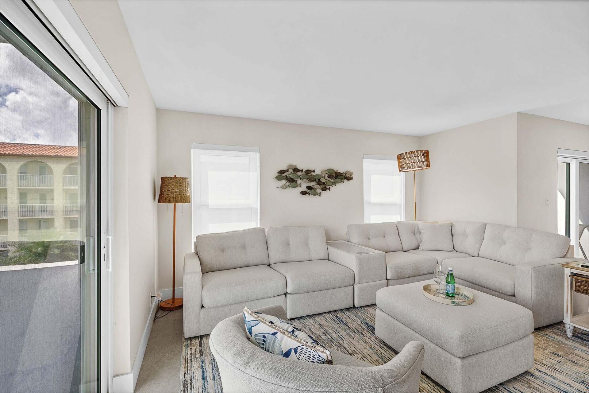 Beautiful 4th floor SE corner condo right across A1A from the public beach. Location, location, location! Beautifully renovated, fully furnished, turnkey, 2 bed / 2 bath condo. Two balconies, one large east facing and one south facing. King sized bed in Master bedroom and 2 full sized beds in guest bedroom. Available June 2026 through February 2027.