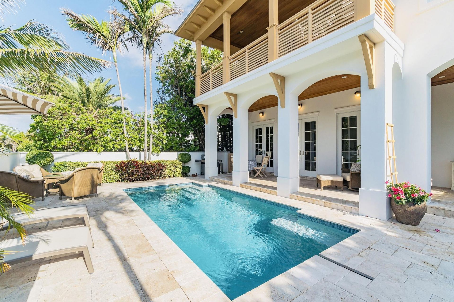 Key West style BEACHSIDE 4/2.5 single family POOL home. Fully casual coastal furnished home provides something no other Delray Beach SFH rental can offer, the absolute ''closest distance to both beach and famous Atlantic Ave''. Steps to the beach, jump in your private pool, or go dining in the best restaurants South Florida has to offer. A Richard Jones design built by Seaside Builders, this home has magnificent million dollar ocean views to celebrate from morning to evening. A large open concept living, dining and kitchen area overlooking the private courtyard and pool. Main bedroom is located upstairs which connects to a large walkout balcony. An office with an ocean view to work from home. The Real Delray Beach retreat you have been waiting to experience