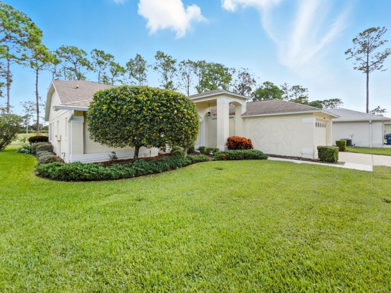 Welcome to this beautifully updated home in the highly desirable Heritage Pines 55+ Golf Community. Offering over 2,100 square feet of living space and no rear neighbors. Inside, soaring cathedral ceilings enhance the open living and dining room combination, while fresh interior paint, new lighting, and modern ceiling fans throughout create a bright, inviting atmosphere. Most of the home features newer vinyl plank flooring for a seamless and contemporary look. At the heart of the home, the remodeled kitchen showcases granite countertops, new cabinetry with stylish hardware, brand-new stainless steel appliances, a breakfast bar, and a cozy dinette, all overlooking the spacious family room. The split-bedroom layout provides privacy, with the primary suite offering dual walk-in closets and a beautifully updated en-suite bathroom with a new custom dual sink vanity with granite countertops. The guest wing includes a large bedroom with walk-in closet, a built in queen-size Murphy bed, and a refreshed guest bath. At the rear, a large Florida room thats connected to the central HVAC, giving this home over 2,100 sqft of cooled living space. The florida room has sliding doors from both the dinette and dining area, and a pass through window from the kitchen, which provides the perfect spot to entertain and enjoy serene views of the green retention area and partial golf course vistas. Recent updates add peace of mind, including a roof (2018), AC(2020) with new blower motor(2025) and a smart wi-fi enabled thermostat, and a brand-new water heater (2025). A golf cart is also included. Heritage Pines residents enjoy a true resort lifestyle with an 18-hole championship golf course, clubhouse with restaurant and bar, pool and spa, fitness center, and courts for tennis, pickleball, and bocce. HOA fees cover cable, internet, lawn care, and irrigation for easy, low-maintenance living. Don't miss the opportunity to make this exceptional home yours-schedule your private tour today!