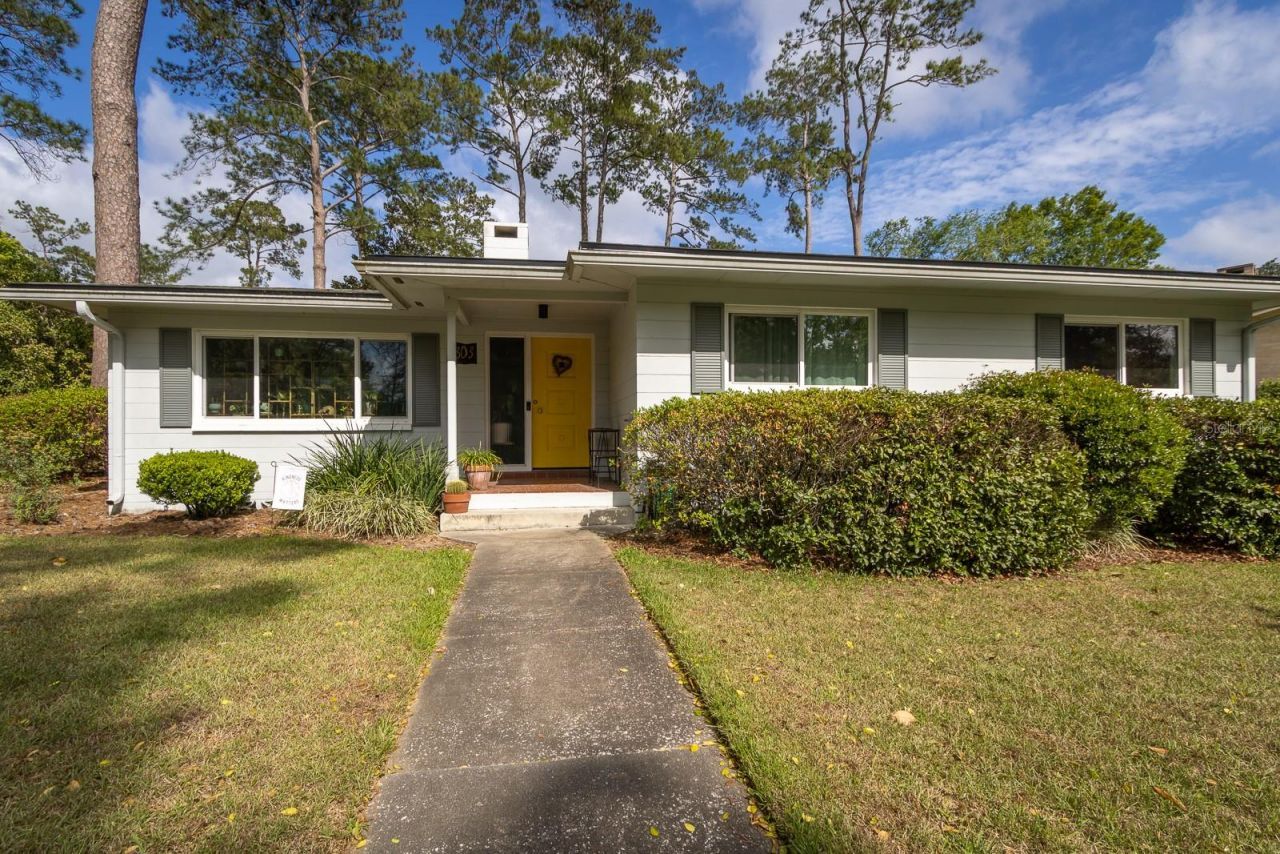 Welcome to this beautiful home just minutes from UF in the desirable Ridgewood neighborhood. Step inside to find rich hardwood floors, a cozy wood-burning fireplace, and a layout that truly works for everyday living-3 bedrooms, an office, and 2 full baths in the main home. An additional in-law suite/bonus room with an en-suite bath adds even more flexibility-ideal as a 4th bedroom, guest space, or private retreat. The entrance to the detached space features a very special catio. The sunroom off of the kitchen is a standout feature, filling the home with natural light and offering a peaceful spot to relax. Storage is plentiful, the yard is fully fenced, the roof was replaced in 2022, the HVAC in 2023 and most of the windows were replaced in 2018. Built in 1964, this home carries classic charm while offering modern comfort. With parks, hospitals, shopping, nature trails, and UF all close by, you'll love the convenience and community feel. Come see how easily this home could fit your lifestyle.