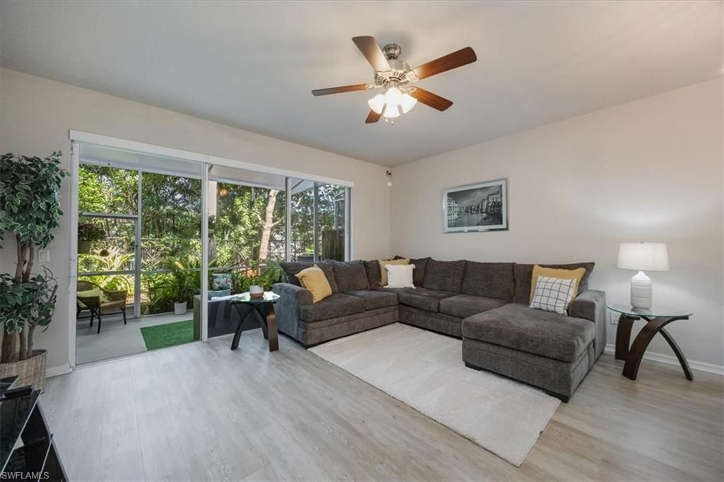 Welcome to your dream home in this prime North Naples location! This beautiful 3 bedroom property boasts an open floor plan with Cortex flooring and fresh paint throughout, complemented by newer appliances, fans, and lighting. The outdoor experience is unparalleled, with a private back patio featuring lush greenery and a new sun screen, perfect for relaxation and entertainment. A mere stroll across the street reveals a serene grassy dog park, enhancing your living experience with picturesque views. This property is part of a community enriched with amenities including a pool/spa, basketball courts, and tennis courts. Essential home updates include a 5-year-old air conditioner, 3-year-old water heater, and a 4-year-old roof, ensuring peace of mind. The location offers unparalleled convenience, being close to pristine beaches, North Collier Regional Park, top-rated schools, and a plethora of shopping and dining options. With its open floor plan, large eat-in kitchen, and covered outdoor patio this residence is not only a home but a lifestyle choice in one of Naples most sought-after neighborhoods.