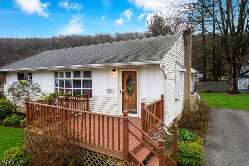 Opportunity awaits in this ranch-style home on a lovely corner lot in a quiet neighborhood. Excellent potential and priced accordingly, just bring your vision and updates to make this home your very own. A welcoming front deck provides a pleasant space to relax and enjoy the surroundings. Inside, the home features 3 bedrooms and hardwood floors throughout the first level. From the kitchen, enter into a three-season room with a cathedral ceiling, four sets of sliding doors, and a cozy wood-burning stove, creating a fabulous space to enjoy. The full basement offers potential for additional living space, providing flexibility for future expansion. The home is serviced by public water with gas available in the street. Conveniently located just minutes from major highways, the train station, restaurants, and shopping, making commuting and daily errands easy. Outdoor enthusiasts will enjoy the nearby hiking and biking trails and recreational facilities. This home is being sold as-is, inclusive of all appliances and the wood-burning stove. No known issues. Some photos enhanced and rooms virtually staged.