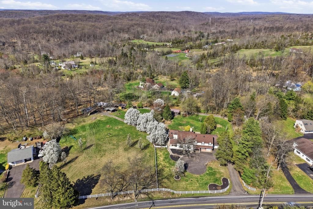 Your dream home has, finally, hit the market! Welcome home to 1920 Ridge Rd in Telford, PA! This almost 4,000 square foot home provides the opportunity to easily add an in-law suite or to run a home based business out of the main level without disrupting your family. Sitting on 2.71 acres of land and with multiple out buildings (with potential for you to add a pole barn) this home is the perfect blend of rural escape and close to everything for the family who loves hosting large family or company gatherings or simply entertaining indoors and outdoors! Add in the bonuses of: a finished basement with a large bar, 2 fireplaces (one wood and one propane), cathedral ceilings, massive family and dining rooms, a covered porch, and a large composite deck and this is one home you will not want to miss! As you drive in, you’re greeted by the expansive lot that is almost fully fenced, the flowering trees, and a welcoming front porch. The main level features a lovely foyer opening to a massive living room / dining room with cathedral ceilings, skylights, a balcony overlook, large custom windows with arched tops and sliding door access to your covered patio with ceiling fan. Your spacious eat-in kitchen features ceramic tile floors, oak cabinets, quartz counters, a pass through to the dining room, tons of counter space and an over sink window box overlooking your expansive yard. The family room virtually mirrors the living / dining room in features with: cathedral ceilings, skylights, a wood burning stove insert, new carpeting and large windows to give you a wonderful view out back. Off of the family room is an enclosed porch with beautiful windows and 3 sliding glass doors to your composite deck. The enclosed porch features: ceramic tile floors, wood ceilings and a propane fireplace (tank has been removed). Rounding out the main level you will find two powder rooms, a laundry room (with laundry chute), an additional space that could be an: office, in-law suite, play room, home gym, craft room and more. The 2 one car garages are heated and there is a multi-purpose room off of the upper garage! Upstairs you will find 2 wonderful bedrooms on your right both with H/W floors under new carpet. There is also a hall bath with a tub shower on this end of the house. At the top of the stairs is a hall space with a cutout view down into the foyer that is the shape of the property and walk up stairs to the attic spaces. Check out the view from the balconies to the LR / DR or to your beautiful family room! Your primary bedroom with new carpeting has cathedral ceilings, a ceiling fan and a huge en-suite bath with soaking tub, stall shower, cathedral ceiling and a very large vanity. From the primary BR you have access to the back balcony overlooking the family room and a bonus room with commanding views of your property that also has a ton of potential! The closet space with cabinetry & laundry chute could also be converted into a 4th bedroom. The floored attic space has 2 large spaces with paneled walls plus built-in drawers and eve storage & could become an additional bedroom or office space. Your finished basement has a large glass block bar, a smaller back kitchenette area, a built-in smoke eater, stairs to outside, and an additional crawl space that houses your oil tank and mechanicals. Outside you will find that all out buildings have electric run to them and that there is a large garage space for outdoor equipment, a cabin with a wood burning stove, a hand pumped well, and a root cellar. There is a chicken coop building, a one horse barn with an attached building, a stage style structure and finally a screened gazebo. Septic system is a raised sand mound installed in 2011. Most of the house is of 2x6 construction with R-19 insulation in walls and R-30 in ceiling. Owners are selling the property in its present condition with no credits or repairs. Showings start at the open house on Thursday 4/9/26 at 4pm.
