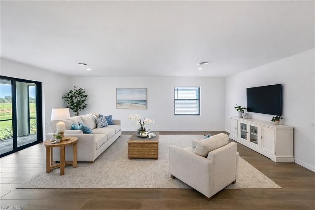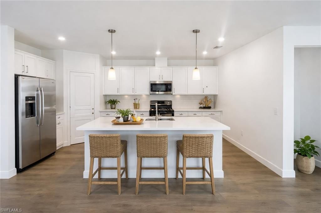 One or more photo(s) has been virtually staged, AI generated or rendered. Rare Venice Floor Plan in Verdana Village | 3 Bed + 3 Bath | Private Backyard Desirable Venice floor plan featuring 3 bedrooms and 3 full bathrooms, including two en-suite bedrooms plus a third bedroom with a nearby full hall bath ideal for flexible living, guests, or a home office. This lightly lived-in home offers ~1,849 sq ft with an open-concept layout, tile flooring in main living areas, and a 2-car garage. The kitchen features quartz countertops, stainless steel appliances, and a large island that flows seamlessly into the great room perfect for everyday living and entertaining. Enjoy a screened lanai and private backyard with no direct rear neighbors, creating a quiet and peaceful outdoor setting. Key Features: Two en-suite bedrooms + full hall bath Split floor plan with private owners suite Walk-in closet + spa-style primary bath Hurricane protection + brick paver driveway Pets welcome Move-in ready Verdana Village Amenities: Resort-style pool & spa, indoor & outdoor pickleball and tennis, basketball, bocce, fitness center, on-site restaurant, cafe, craft beer lounge, dog park, playground, and more.