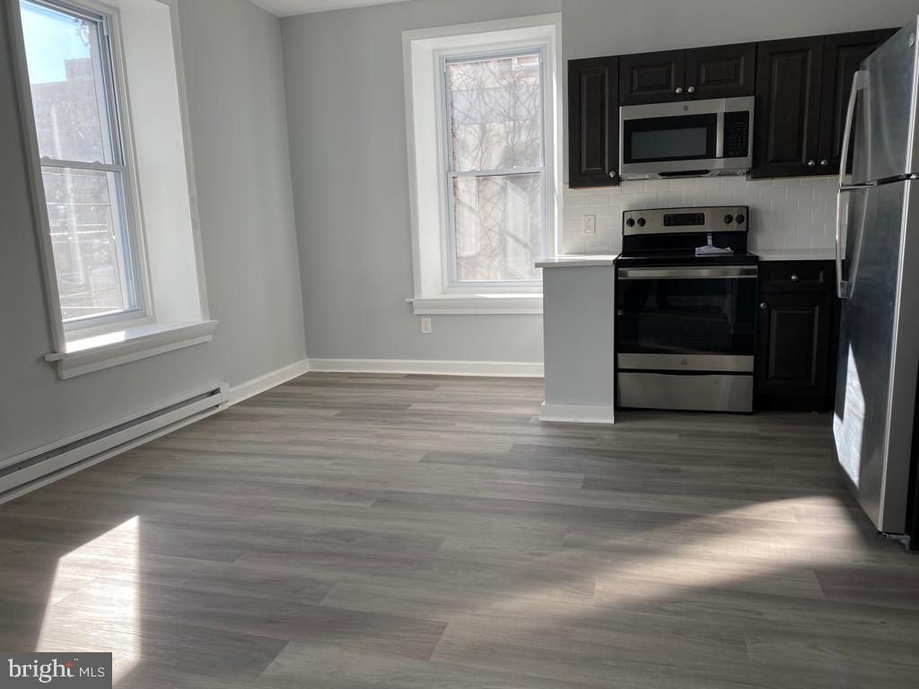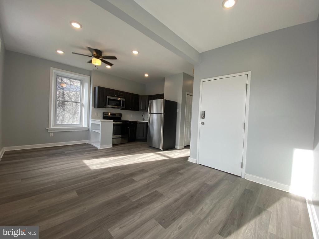 Step into your newly renovated one-bedroom, one bath apartment! This spacious unit features an upgraded kitchen with quartz countertops, dark gray shaker cabinets, white subway tile backsplash and stainless steel GE appliances. The bathroom showcases a brand new white vanity and tub with white subway tile. Other features include vinyl plank flooring throughout, keyless entry, electric heat and new windows and ceiling fan. $75 monthly water fee will cover all cold water usage. First, last, and security deposit required to move-in. Steps away from Vernon Park and a short walk to Uncle Bobbie's Coffee and Books, Planet Fitness, Walgreen and many restaurants, shops and markets. Located close to public transportation including the Germantown Train Stop and close to Germantown Friends School and Greene Street Friends School.