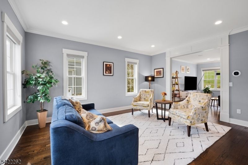 Welcome to this stunning 5-bedroom,5.5-bath Colonial offering exceptional turn-key living in the highly sought-after heart of Martinsville. Thoughtfully designed with both elegance and functionality in mind, this home delivers the perfect blend of modern sophistication and everyday comfort. Upon entry, you are greeted by a grand two-story foyer that sets the tone for the home's open layout, seamlessly flowing into a spacious formal living room and an elegant dining room-ideal for both entertaining and everyday living. The gourmet kitchen features a professional-grade gas cooktop, double ovens, wine fridge, oversized island, Quartz countertops, and a butler's pantry with a coffee bar, flowing seamlessly into a large family room with a cozy gas fireplace and large windows. A first-floor bedroom with en-suite bath provides flexibility for guests or a home office. Hardwood floors span the first and second levels, complemented by a central vacuum system. Upstairs, the expansive primary suite offers a sitting area, fireplace, large closet, and a spa-like bath with double vanity, soaking tub, and separate shower. Two bedrooms share a Jack & Jill bath, while another enjoys a private en-suite. A convenient 2nd floor laundry room adds ease. The finished basement has a full bath, entertainment space, and room for a gym or play area. Ideally located near shops, highways, top-rated schools, the airport, and NYC transit, this home blends comfort, and convenience. Cameras maybe in use.