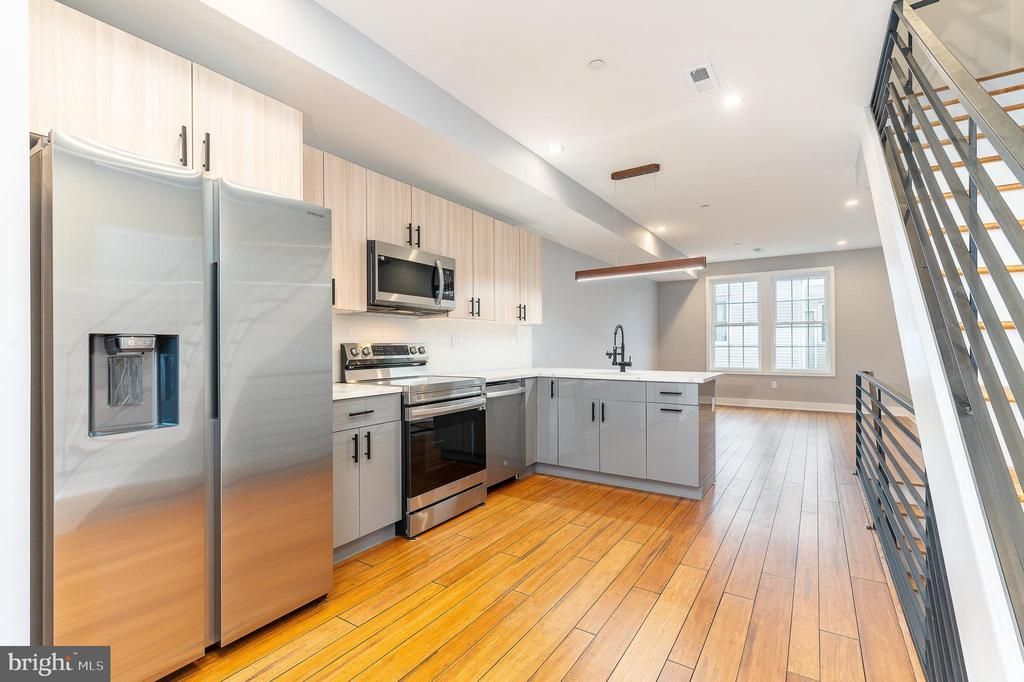 2821 E Livingston Street #2 – Brand New Bi-Level 2 Bed / 2 Bath | 1 Month Free on a 12-Month Lease Landlord is offering one month free rent with a signed 12-month lease—an exceptional opportunity to secure a brand-new, never-lived-in residence with high-end finishes in a prime location. This bi-level 2-bedroom, 2-bath unit features a sleek, modern design with wide-plank hardwood flooring, recessed lighting, and a striking open staircase that adds architectural character. The main level offers a bright, open-concept living and dining area that flows seamlessly into a beautifully finished kitchen complete with flat-panel cabinetry, quartz countertops, stainless steel appliances, and a large island with seating. The thoughtful bi-level layout provides ideal separation of space, with two spacious bedrooms and two full bathrooms featuring contemporary tilework, glass-enclosed showers, and modern fixtures. In-unit laundry adds everyday convenience. Perfectly positioned just off Frankford Avenue and steps from the heart of Fishtown, you’ll have immediate access to some of the city’s best restaurants, coffee shops, and nightlife. Easy access to I-95 and close proximity to the Market-Frankford Line (El) make commuting into Center City seamless. Brand new construction with premium finishes throughout—this is a standout rental opportunity in one of Philadelphia’s most sought-after neighborhoods.