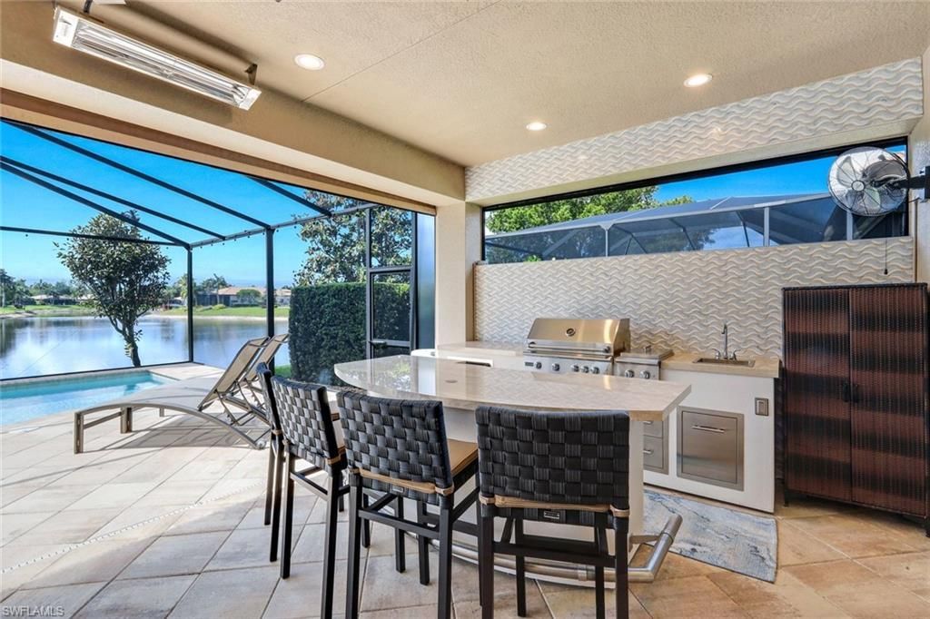 FABULOUS LAKE VIEWS! Meticulously maintained Furnished & Turnkey saltwater pool home in desirable Cordova at Spanish Wells. Protected by a Whole House Generator, this better-than-new residence features a 3-Car Extended Tandem Garage and extra-wide paver driveway. A covered entry leads to a welcoming grand foyer and an open floor plan ideal for everyday living and entertaining. The upgraded Gourmet Kitchen includes white shaker cabinetry, granite countertops, new induction cooktop with modern hood, wall oven, new refrigerator & dishwasher, pantry, breakfast bar, and casual dining. Added wine cooler and new washer & dryer. The Great Room with coffered ceiling opens to an AMAZING COVERED OUTDOOR SPACE elevated with a new Paradise Grill Summer Kitchen & entertaining bar PLUS electric Storm Smart screens, infrared ceiling-mounted heaters, oversized fan, and wall-mounted TV. The custom Saltwater Pool & Spa with water features (waterfall & multi-colored lights) is surrounded by an extended screened paver lanai. The spacious Primary Suite offers a coffered ceiling, dual customized walk-in closets, and a private bath with dual vanities, oversized shower, private water closet, and a newly added primary bathtub. Additional Bedrooms/Den, Office, and 3 Full Baths are positioned for ideal guest privacy. Modern lighting and ceiling fans throughout. Exterior features include Mr. Foamy woodpecker-proof stucco for added durability. Each Cordova home includes a Social Membership with optional upgrade to Full Golf. Amenities include dining, tennis, bocce, pickleball, fitness center with classes, and community pool. Prime location minutes to shopping, dining, and the Gulf’s world-class beaches. SWFL Int’l Airport approx. 30 minutes away.