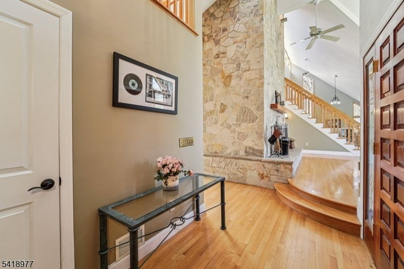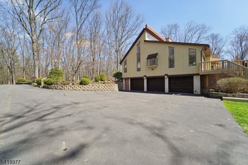 A winding, tree-lined drive sets the tone for this exceptional contemporary retreat set on 5.7 private acres backing to parkland in Chester Township. Thoughtfully maintained and move-in ready, this contemporary expanded ranch delivers single-floor living at its finest ? four spacious bedrooms, soaring ceilings, and walls of windows flood the open floor plan with natural light. The renovated kitchen features a large center island, country layout and eat-in kitchen perfect for entertaining, while the grand living and family rooms anchor the home's dramatic interior. A loft overlooks the main level and leads to a discreet ladder-access safe room ? a truly unique feature ideal for secure storage. The luxurious primary suite spans 26x18 with a stunning en-suite bath. Partially finished basement provides room to grow. Outside, enjoy a massive 38x13 deck, hot tub, and beautifully manicured yard. Car enthusiasts and hobbyists will appreciate the rare 5-car garage capacity plus a 12x24 outbuilding ? ideal for a workshop, collector vehicles, or additional storage. A whole-house natural gas auto-transfer generator adds year-round peace of mind. New gutters throughout. All furnishings available for purchase. Multi-zone heat and cooling, dual-sided wood-burning fireplace in living room and family room, private road setting. Minutes to top-rated W.M. Mendham schools. Extreme privacy, space, and one-of-a-kind features rarely found at this price.