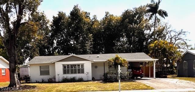 Step into this inviting 4-bedroom, 2-bath home offering a bright split floor plan and an upgraded kitchen filled with rich real-wood cabinetry. The only 4 bedroom presently listed in Poinciana Village at this time. The expansive TV/family room is perfect for entertaining or relaxing, while neutral tile and laminate flooring keep the home feeling fresh. Enjoy peace of mind with a 3-year-old roof, 4-point inspection and a 1-year-old A/C, plus exceptional storage thanks to a full attic and a spacious Teds Shed. The oversized driveway fits up to five cars—ideal for guests or a growing household. Located in a desirable no HOA community featuring a county park with a playground, tennis courts, and basketball courts, this home places you minutes from Coastland Center, Naples High School, beaches, restaurants, and top shopping. A centrally located Naples opportunity that blends comfort, convenience, and charm. Poinciana Village itself is a hidden gem!
