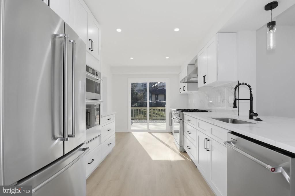 Top-to-bottom renovated three-level single-family home nestled in the highly desirable Seven Oaks neighborhood off Dale Drive—just steps to Sligo Creek Park and within walking distance to downtown Silver Spring’s shops, restaurants, and entertainment. The main level features a spacious family room with a cozy fireplace, seamlessly open to the brand-new gourmet kitchen showcasing stainless steel appliances including wall oven-microwave combo, stove, range hood, refrigerator, dish washer and wine cooler , quartz countertops, upscale cabinetry, and a stunning waterfall quartz island. French glass doors lead to the new deck—perfect for indoor-outdoor living and entertaining. A formal dining room flows into the bright living room, creating an ideal layout for gatherings. Upstairs, the primary suite offers a private, fully renovated bath with new tile, shower, vanity, toilet, fixtures, lighting, and mirror. Two additional generously sized bedrooms share a beautifully updated hallway bath featuring new tile, bathtub, vanity, toilet, fixtures, lighting, and mirror. The fully finished lower level includes a fourth bedroom and a third full bath—completely renovated with new tile, bathtub, vanity, toilet, fixtures, lighting, and mirror. A large recreation room with windows and an exterior door provides abundant natural light and direct access to the backyard. Major Updates Include: New flooring throughout; Fresh interior paint; New lighting fixtures; New roof; New hot water heater; New condenser, HVAC approximately 5 years old; Some brand-new windows and other windows approximately 9 years old; New deck; New concrete driveway with 4 parking spaces. Located in a vibrant, walkable, and family-friendly neighborhood, this home offers easy access to nearby parks, shops, and restaurant. Just a short stroll to downtown Silver Spring, where you’ll find a wide variety of restaurants, entertainment, and retail options, including Whole Foods Market within walking distance. In the spring, take in the stunning cherry blossoms from the magnificent tree in the backyard—a truly special feature that enhances the charm of this wonderful community.