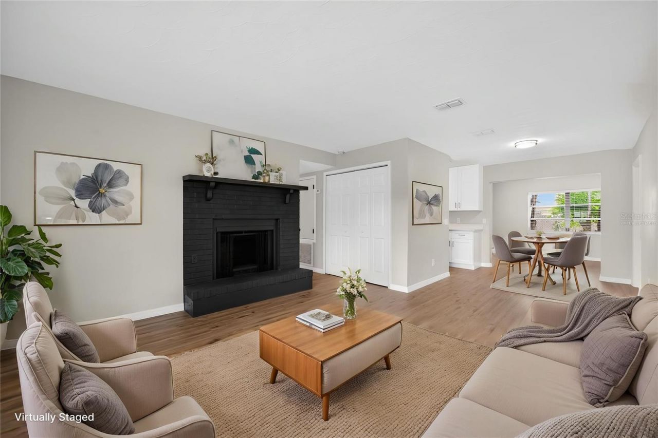 One or more photo(s) has been virtually staged. Fully renovated 3-bedroom home in the rapidly growing Hourglass District. This move-in-ready property features a brand-new roof (2026), new HVAC system, fresh interior and exterior paint, and new luxury vinyl plank flooring throughout with updated baseboards. The redesigned kitchen offers modern shaker cabinets, quartz countertops, and stainless steel appliances, creating a clean, functional space for everyday living and entertaining. Both bathrooms have been updated with contemporary finishes, along with new hardware and fixtures throughout the home. The living room centers around a wood-burning fireplace, adding character and a practical focal point. Outside, a fenced side yard provides privacy and usable outdoor space, along with a detached shed for additional storage. Located in the sought-after Hourglass District, this home benefits from close proximity to local dining, coffee shops, parks, and downtown Orlando, while still offering a neighborhood feel. Easy access to major roadways makes commuting straightforward.