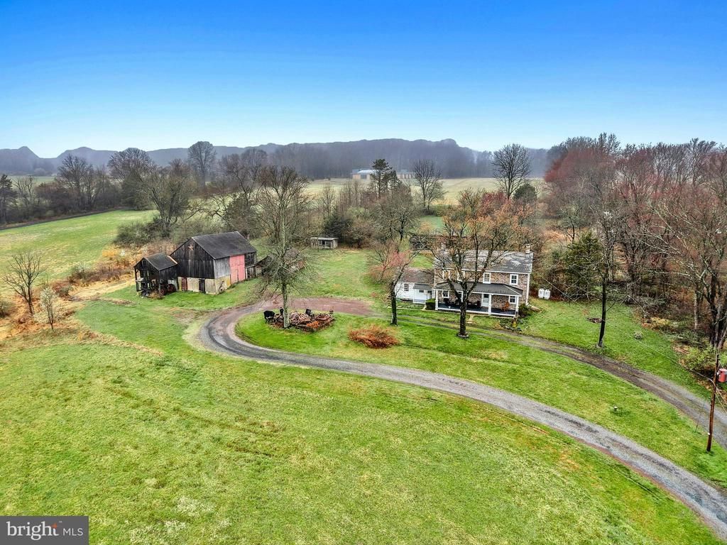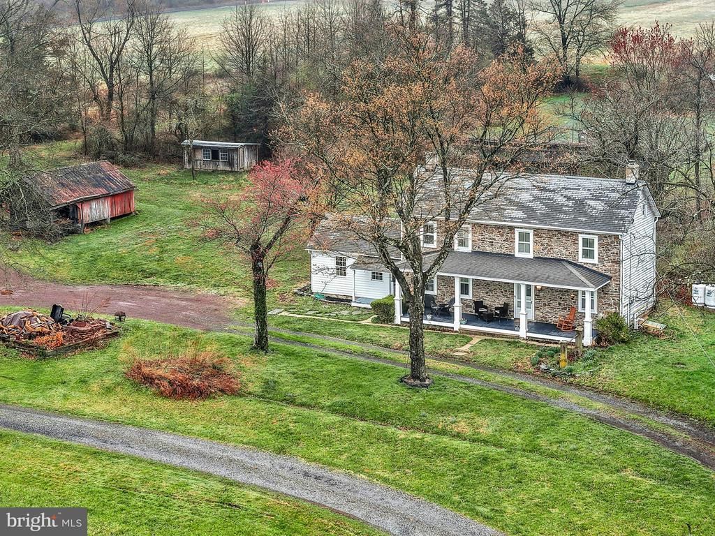 Wide skies and tall trees frame this incredible 12 acre homestead on a quiet country road in Bucks County. Set far back from the road, the classic 1790 stone farmhouse reminds one of a slower, more intentional life. Panoramic views make the covered front porch a lovely place for morning coffee or evening drinks with friends. Inside, the home is cozy, with deep silled windows with rounded cheeks throughout, and a wood burning stove in the living room. The eat-in kitchen is sunny and well-appointed, with room for a table and chairs. Adjacent, the mudroom and workroom provide storage or hobby space. Upstairs, a primary suite is joined by two additional bedrooms and a hall bath. Access to an unfinished third floor offers an opportunity for additional living space. Wood floors are found on each level. The laundry is located in the tidy lower level, along with additional storage space. This exceptional property and location presents an unparalleled opportunity which will appeal in a multitude of ways. As is for a serene rural retreat or as a historic backdrop for expansion and embellishment befitting the location and setting. Located in the Central Bucks School District.