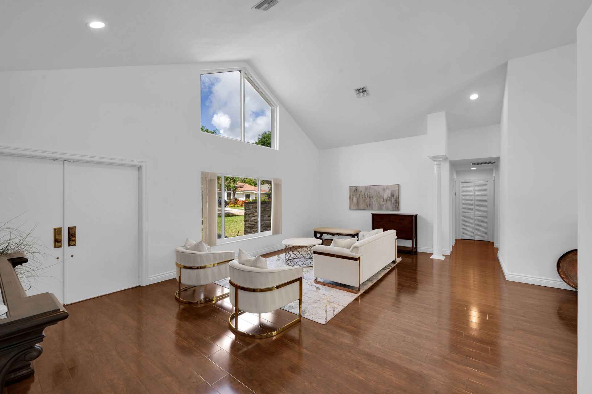 Spacious single-story 4BD/3BA gorgeous pool home in Woodfield Hunt Club, West Boca. 3,069 SF under air on a private .44-acre lot with circular driveway. Vaulted ceilings, hardwood floors, and abundant natural light in the formal living and dining areas. Large kitchen with granite counters, center island cooktop, and double wall ovens. Family room features a wood-paneled cathedral ceiling and floor-to-ceiling stone fireplace. Resort-style backyard with oversized covered patio, ceiling fans, outdoor TV, grill, pool, and spa-all surrounded by mature tropical landscaping and privacy hedging. Two-car garage with an EV charger. A-rated Boca schools. Minutes to Town Center, Whole Foods, I-95, and the Turnpike. Call to schedule a private showing!