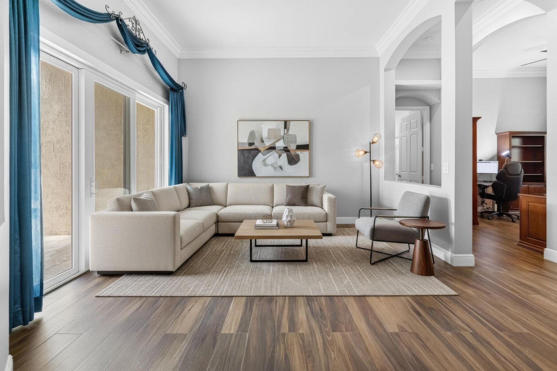 An exquisite blend of understated luxury and comfort meet in this remodeled 4 bedroom PLUS DEN, 2 bathroom pool home located in an A-RATED elementary and middle school zone. It truly shows like a model and features an extensive list of upgrades completed between 2020 and 2024. The interior is finished with 12-14' ceilings topped with elegant crown moldings and wood like tile throughout. A chef's gourmet kitchen offers 2023 stainless steel appliances, Cambria quartz countertops, plenty of updated cabinetry, and an oversized island. The primary bedroom features a tray ceiling and two walk in closets. Both bathrooms were beautifully remodeled in 2023-2024. Enjoy a private, fenced in backyard and a beautiful patio finished with marble tile, overlooking the refreshing freeform pool resurfaced in 2020. Additional notable features include ALL IMPACT windows and sliders, a 2022 ROOF with LifeGuard gutters, 2022 HVAC, plantation shutters, and a 2025 full size washer and dryer with a laundry sink. Country Woods is a fantastic boutique gated community conveniently located near North Broward Prep (TOP Private Boarding High School in FL), the Florida Turnpike, grocery stores, shopping plazas, and the world renowned Sawgrass Mall. Refrigerators in the garage do not stay. All measurements are approximate. Take a look at the 3D virtual walkthrough.