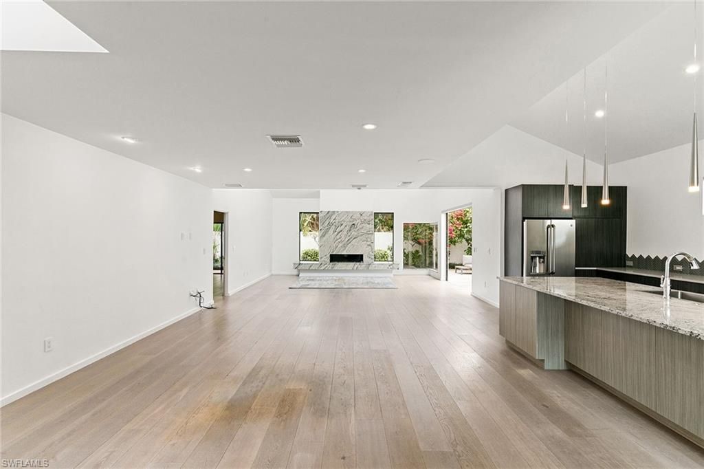 Art-forward, resort-casual and unmistakably Pelican Bay. This Tierra Mar villa lives like a private garden retreat, wrapped in lush tropical landscaping and an expansive paved outdoor living room that flows effortlessly around a beautiful pool. Inside, the mood is elevated and designed for buyers who appreciate spaces with character. A dramatic fireplace with a granite surround creates an unforgettable first impression, while the floor plan opens wide to a generously sized kitchen reimagined for modern living. The oversized island anchors the space for everything from morning coffee to impromptu happy hour, and the updated layout makes entertaining feel easy and natural with wood flooring and thoughtful finishes. Both baths have been enlarged and renovated, delivering a calm, spa-like experience for owners and guests alike. With two bedrooms, two baths and a desired two-car garage, this villa is ideal for the Pelican Bay buyer who wants lock-and-leave ease without sacrificing privacy, outdoor lifestyle or design impact. Tierra Mars villa-style living offers the comfort of a home with advantages of a beautifully maintained community, all moments from beaches, Artis-Naples, Waterside Shops and signature Pelican Bay lifestyle.