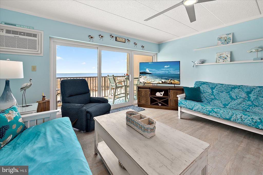 Welcome to Sandpiper Dunes #108 - where every detail is designed to capture the essence of effortless coastal living. This beautifully updated 1-bedroom, 1.5-bath oceanfront property is more than just a condo—it’s a retreat where style, comfort, and the rhythm of the ocean come together perfectly. From the moment you walk in, the space feels light, bright, and thoughtfully curated. The open layout flows seamlessly, anchored by a stunning, fully updated kitchen (2023) featuring crisp white cabinetry, upgraded countertops, stainless steel appliances, and elegant coastal finishes that make everyday living feel elevated. Every inch of this condo reflects careful attention and pride of ownership - from the cohesive décor and beautiful flooring to the spa-inspired bathrooms (2023). The living area opens effortlessly to your private balcony - an incredible extension of the property and truly the standout feature. Here, you’re surrounded by ocean views, salty breezes, and the soothing sound of waves. It’s the kind of space that invites you to slow down, sip your morning coffee, or relax as the sun sets - your own peaceful escape just seconds from the sand. Additional upgrades, including newer sliding glass doors (approximately 5 years old), a hot water heater (4 years old), and separate AC units for year-round comfort—the bedroom unit is approximately 6 years old and the living room unit about 4 years old—along with two ceiling fans to enhance comfort and efficiency. Complete with an outdoor pool and a prime Ocean City location close to dining, shopping, and entertainment, Sandpiper Dunes offers coastal living at its finest. If you’ve been searching for a place where every detail feels just right and the beach lifestyle comes naturally, Sandpiper Dunes #108 is the one you’ve been waiting for.