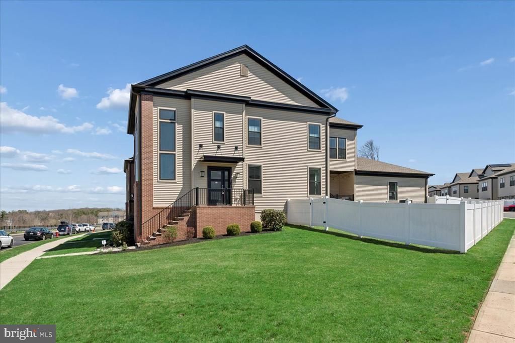 Expansive, upgraded 4-bedroom, 3 full and 2 half bath end-unit townhome with 2-car garage in Montgomery Crossing with 3,412 square feet plus finished basement—just a few years young and one of the only newer construction homes available in Skillman, within the Blue Ribbon Montgomery Township School District. Set on a premium corner lot with expanded green space, fencing, and a sprinkler system, this home offers privacy and outdoor usability rarely found in townhome living while delivering the space and feel of a single-family home. Designed with an upgraded open-concept layout, the main level is filled with natural light, beginning with an inviting entryway framed by walls of windows. The kitchen features a large quartz island with seating for casual meals, upgraded cabinetry, JennAir wall oven, built-in microwave, vented hood, reverse osmosis water filtration, and WiFi-connected appliances. On one side, a formal dining room offers an elegant setting for entertaining, while on the other, an expanded breakfast area opens to a deck with upgraded stairs leading down to the lawn—perfect for outdoor seating and BBQ overlooking the private yard. The living room is anchored by an upgraded electric fireplace with shiplap mantel, and a conveniently located powder room completes the main level. Upgraded LVP flooring extends throughout the home. Upstairs, the primary suite features a tray ceiling upgrade, a spacious walk-in closet, and a well-appointed bath. Custom closet organization systems enhance the primary suite, princess suite, and laundry room, offering thoughtful storage and everyday functionality. The private en-suite princess suite provides a well-designed secondary bedroom with its own bath. Two additional bedrooms, a hall bath, and convenient upper-level laundry complete the second floor. Bathrooms are enhanced with upgraded cabinetry and Silestone counters. The fully finished lower level expands the home’s versatility with a media room, exercise area, bonus room, bath, and additional storage space, along with a wet bar for added convenience. The lower level is primarily carpeted for comfort, with a section finished in LVP—designed for both entertaining and extended use. Smart home features include app-controlled lighting (kitchen, living room, basement, and primary suite), motorized shades, smart thermostats, video doorbell, smart locks, smart garage door, WiFi-enabled dishwasher, outdoor camera, security system, app-controlled sprinkler system, and EV charger in the 2 car garage. Built in 2020 with remaining coverage under the builder’s 10-year structural warranty. Enjoy low-maintenance living with HOA coverage for snow removal, trash, and common area maintenance—offering a simplified, lock-and-leave lifestyle. Located less than a quarter mile from the new Montgomery Promenade shopping center—expected to feature Whole Foods and additional retail—adding even more convenience and future value to this already exceptional location. Conveniently located just 0.4 miles to Starbucks, 0.5 miles to Montgomery Shopping Center, and 2.1 miles to Orchard Hill Elementary, with easy access to Route 206, I-295, and downtown Princeton.