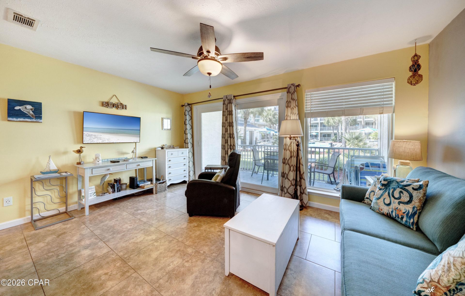 LOWEST PRICED LISTING IN NAUTICAL WATCH! PRICED TO SELL! Welcome to your Gulf of Mexico escape at Nautical Watch Condo Unit F2 in Panama City Beach. This beautifully updated 1-bedroom, 1-bathroom ground-floor unit blends comfort, style, and convenience--making it perfect as a second home or a high-performing investment rental. Fully furnished and decorated with a charming beach theme, the condo features an inviting open floor plan that feels spacious throughout its 626 square feet. The updated kitchen is a standout, showcasing modern cabinetry, stunning countertops, and a coordinating backsplash. The bathroom has also been tastefully renovated, adding to the unit's overall appeal. Located in the highly desirable low-rise Nautical Watch Gulf Villas, this unit offers easy access and a relaxed, townhome-style layout--an appealing alternative to crowded high-rise living. Step outside and enjoy the beautifully landscaped pool area, complete with outdoor grills, sun loungers, and shaded picnic tables--perfect for relaxing or entertaining. The community is ideal for families, offering a peaceful retreat while still being close to everything. Situated on the east end of Panama City Beach, you're just minutes from St. Andrews State Park, Panama City Dive Center, and the famous Capt. Anderson's restaurant. Whether you're looking for adventure or relaxation, this location puts it all within reach. Don't miss this opportunity to own your piece of paradise. Schedule your showing today and start living the beach life!