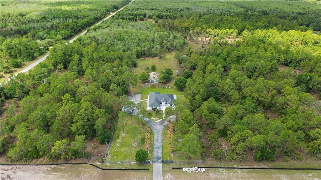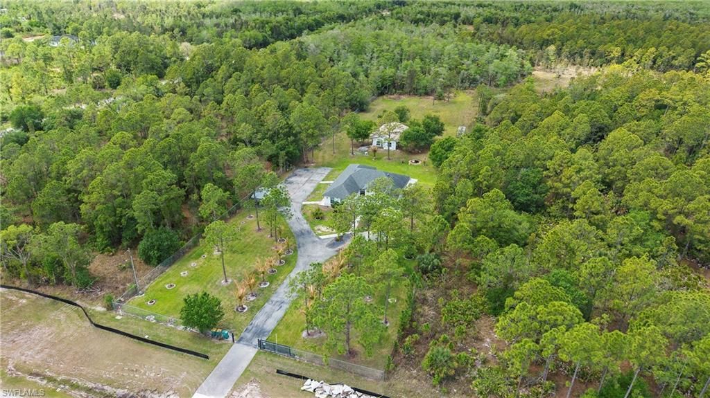 Golden Gate Estates living with space, income potential, and flexibility on 2.34 acres of fully fenced land in Naples Florida. Built in 2021, this property offers a practical layout designed for real-life use with added value built in. Sooo close to all new developments and growth with so much potential to grow. Inside, the home features a total of 4 bedrooms and 3 bathrooms, with the main living area configured as a 3 bedroom, 2 bathroom layout. The design includes two kitchens within the main home, plus a separate 1 bedroom, 1 bathroom living space with its own kitchen, currently rented. This setup is ideal for extended family, guests, or generating consistent rental income. Wood flooring runs throughout, with open living and dining areas, a dedicated laundry room, and a lanai that extends the living space outdoors. The exterior highlights true acreage living in Golden Gate Estates. The 2.34-acre lot is fully fenced, offering privacy, security, and freedom with no HOA. A detached Storage building provides covered parking, and there is ample space for additional structures, storage, or outdoor enjoyment. A storage building is located at the rear of the property, with permitting currently in progress. The building could be multipurpose for many possibilities. Built with concrete block construction, tile roof, well water, septic system, and irrigation, this property offers a solid and low-maintenance setup. Horses are allowed, adding to the lifestyle appeal. Located just off Everglades Blvd with easy access to shopping, dining, healthcare, Big Corkscrew Island Regional Park, and Great Wolf Lodge. Schedule your private showing and explore the flexibility and income potential this property offers.