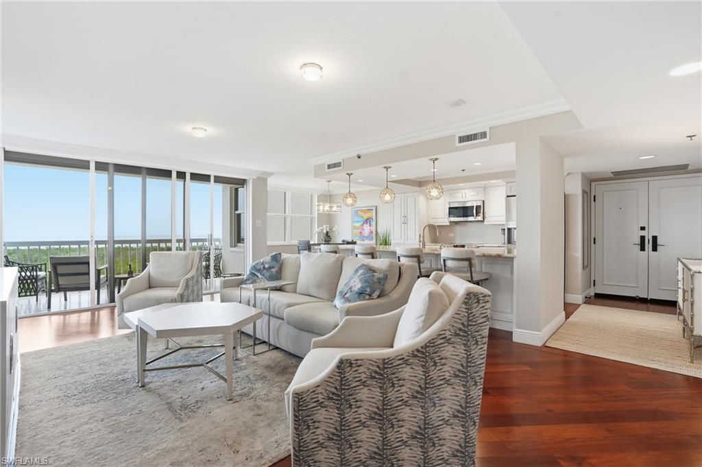 9th-floor 2 + den/2 bath residence with expansive Gulf views and direct access to the Pelican Bay lifestyle. This updated, move-in-ready unit features a well-designed and updated kitchen, renovated baths, custom closets, stunning hardwood floors, and hurricane shutters for added protection. Pelican Bay residents enjoy 2.5 miles of private beachfront with attended service, including chairs and umbrellas, along with tram access to the beach. One of the few communities in Naples with beachfront dining, Pelican Bay offers two private Gulf-front beach clubs with restaurant and bar service directly on the sand. St. Kitts is one of only three buildings within a private, manned-gated enclave at the center of Pelican Bay, offering a higher level of privacy and exclusivity. Amenities include recently updated resort-style pool, fitness center, and social spaces. Two guest suites are available for visiting family and friends. Ownership includes access to Pelican Bay’s tennis centers and a full calendar of fitness, social, and recreational activities. This is the pinnacle of lock and go Naples active and social lifestyle.