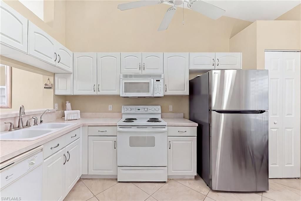 Spectacular lake and fountain views set the stage for this home in one of North Naples’ most sought-after communities. Ideally located in a premier North Naples location, this home features 2 bedrooms, 2 baths, and a 1-car detached garage, along with impact windows and sliders for added peace of mind. Inside, the home is finished in soft, neutral tones with timeless tile flooring throughout. The kitchen offers a charming breakfast nook/computer area, perfect for casual dining or everyday convenience. The spacious primary suite captures the stunning lake views and features a large walk-in closet and en-suite bath with dual sinks and a generous shower. The guest bedroom is comfortably furnished with two twin beds. Notable upgrades include a new tile roof in 2019, a newer washer and dryer, a stainless refrigerator, and impact windows and sliders installed in 2021. Hurricane shutters on the lanai and windows provide additional storm protection. This gated community offers an exceptional lifestyle with resort-style amenities, including three heated pools, a spa/hot tub, Har-Tru tennis courts, bocce, a fitness center, billiards, an activities room, and an active social calendar through the activities committee. The location is truly unbeatable, just minutes from Delnor-Wiggins Pass State Park, Mercato, Whole Foods, Seed to Table, Veterans Park, North Collier Regional Park, water park, top-rated schools, medical facilities, the hospital, theater, RSW airport, with easy access to I-75.