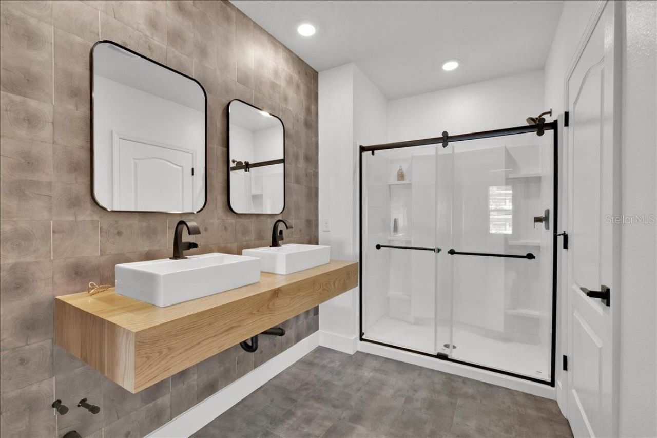 CONTEMPORARY NEW SINGLE FAMILY 3 BEDS, 2 BATHS AND 2 CAR GARAGE CORNER UNIT** with Vinyl tile though whole house. ***UNIQUE UPGRADES IN THE KITCHEN AND BATHROOMS*** Located in the highly desirable community of Villages at Harmony. You will be just 5 minutes from Narcoossee Rd. Upgrades in the kitchen include beautiful neutral quartz countertops with beautiful neutral color accent cabinets under the island top for additional storage. Neutral upper cabinets with silver accent hardware throughout the kitchen make this kitchen stand out and let's not forget the stainless steel appliances that are also included. Enter through the impressive foyer or from your 2-car front load garage. Walk outside on your back patio and enjoy the beautiful Florida weather. High ceiling and beautiful windows with plenty of light in the living room, find the secluded master suite with large walk in closet and generous master bath. Find 2 additional bedrooms that can fit the whole family and an additional 2 full bathroom. This is the perfect floorplan for any family. DON'T WONT LAST!!! ***LANDSCAPING INCLUDED IN THE RENT***
