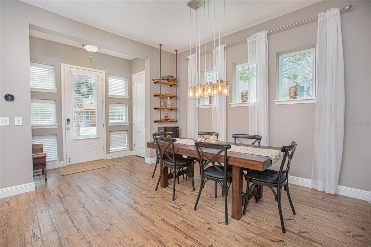 Located in the highly coveted Laureate Park community (where neighbors wave and the amenities might just spoil you), this beautifully maintained two-story home delivers the perfect mix of modern style, everyday comfort, and a location that's hard to beat.With 1,872 square feet, this three-bedroom, two-and-a-half-bath charmer is thoughtfully designed for both living your best life and hosting it. Step inside to a bright, airy open-concept floor plan where soaring ceilings, rich wood flooring, and abundant natural light set the tone. Custom accents add just the right amount of warmth-because a home should feel impressive and inviting.The kitchen is the true heart of the home-and yes, it's ready for its close-up. Featuring a large island with bar seating (ideal for morning coffee or evening wine), generous counter space, stainless steel appliances, and beautiful cabinetry accented with tasteful backsplash, it's equal parts functional and fabulous.Now, let's talk about a rare find: a spacious driveway. That's right-extra parking for guests, hobbies, or simply the joy of not playing musical cars. It leads to a private rear-entry two-car garage, keeping the front of your home picture-perfect. Just off the living area, sliding glass doors open to a cozy enclosed sunroom-your new favorite spot for morning reads, game-day retreats, or unwinding after a long day.Upstairs, the primary suite offers a peaceful escape, complete with a spacious walk-in closet and a well-appointed bathroom featuring dual sinks, granite countertops, and a large tiled shower. The upstairs laundry room keeps life convenient. Two additional bedrooms share a Jack-and-Jill bath, each bright, stylish, and ready to impress.Living in Laureate Park means enjoying a master-planned lifestyle with parks, scenic trails, resort style pool, community gardens, tennis courts, a basketball court, and plenty of space for both you and your four-legged companions. It's the kind of neighborhood families move to-and then never want to leave.Notable upgrades include a new refrigerator (2024), new washer (2024), HVAC (2024), updated flooring (2024), in-wall living room speakers, and EcoBee thermostats upstairs and downstairs-because comfort should be smart, too.Conveniently located just 13 minutes from Orlando's Brightline Train and International Airport, with easy access to 417. Only 30 minutes to world-class resorts and parks, this home truly checks all the boxes.Schedule your private tour today-because homes like this don't stay secret for long.