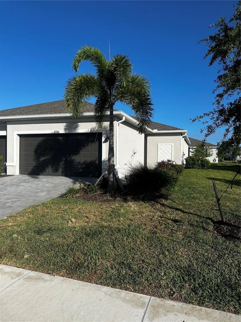 Experience easy coastal living in this beautifully upgraded villa located in a desirable gated community just 6 miles from the beach.This well-appointed home offers added peace of mind with impact windows and is situated in an X flood zone (no flood insurance required). The open-concept floor plan is enhanced by designer paint selections and custom trim work, creating a clean, modern, and inviting interior.The kitchen features quartz countertops, white shaker cabinetry, and stainless steel appliances, complemented by upgraded lighting throughout. Enjoy tile flooring throughout the entire home-no carpet, making maintenance simple and stylish.The living space is outfitted with premium Hunter and Minka Aire ceiling fans, and the home extends outdoors to a screened rear lanai with pavered flooring, perfect for relaxing or entertaining. A pavered driveway adds to the home's curb appeal.Enjoy low-maintenance living with lawn care, irrigation, and high-speed internet included. Residents also have access to resort-style amenities, including a community pool, fitness center, pickleball courts, and playground.Currently tenant-occupied with a lease in place through August 19, 2026, this property offers an excellent opportunity for investors or future owners planning ahead.A perfect blend of location, upgrades, and lifestyle-Florida is calling! Property may be sold turn key if buyer wishes. Inventory list in attachments and by separate bill of sale.