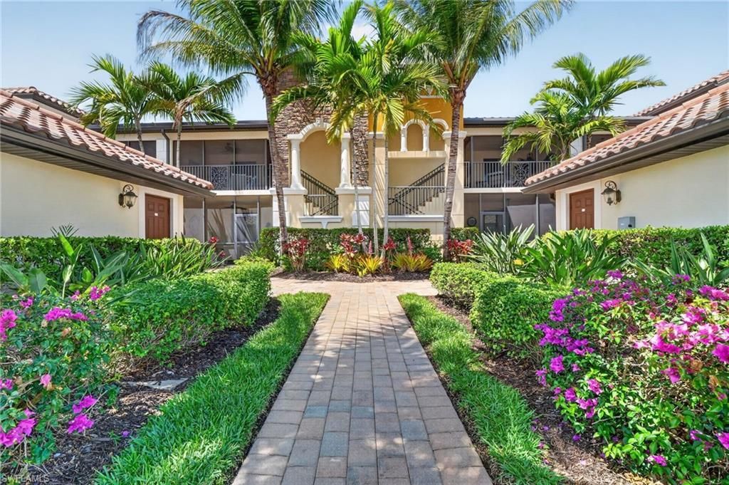Welcome to an exceptional opportunity to experience resort-style living in the prestigious community of Treviso Bay, where every day feels like a private escape. This beautifully upgraded first-floor veranda with a coveted social membership offers serene water views, coastal charm and amenities that dazzle. Inside, the residence brings understated elegance with warm designer tones, classic wainscoting and thoughtfully curated finishes throughout. The bright, coastal-inspired kitchen showcases crisp white cabinetry, a view over the water, and a charming breakfast nook—perfect for morning coffee or a quiet retreat. The open-concept living area flows seamlessly to the screened lanai, where the soft natural light creates a peaceful, luxurious ambiance. The den is both functional and stylish, featuring a custom Murphy bed with illuminated cabinetry, ideal for hosting guests with ease. Life in Treviso Bay is defined by its world-class amenities, centered around the renowned Club Rilassare—an indulgent, resort-style oasis featuring a lagoon pool, spa, poolside dining and bar service, state-of-the-art fitness center, and a full-service luxury spa. Residents enjoy an active yet refined lifestyle with tennis, pickleball, bocce, and beautifully maintained grounds designed for both recreation and relaxation. The elegant main clubhouse offers upscale indoor and outdoor dining, social spaces, and a vibrant calendar of events, while the private TPC Treviso Bay course provides seasonal access for social members. Perfectly positioned just minutes from the world-class dining, shopping, and culture of Fifth Avenue South, the white-sand Gulf beaches, and Marco Island, this residence delivers the ultimate blend of luxury, leisure, and location.