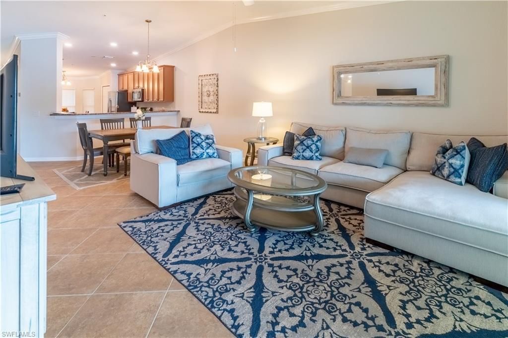 Available for December 2026 as well as off season, already rented for 2027 Season Jan - Mar! Highly sought after 2BR/2BA+Den Arabella model Veranda. This beautiful end unit has two lanais, one in the rear with gorgeous lake views, and one in the front providing more privacy. Turnkey furnished, tile throughout the main areas and carpet in the bedrooms. This condo offers king size accommodations in the master and queen in the guest, the den is also set up as a bedroom with two twins. Please note that this property comes with Social Membership and does not include Golf. The Social Membership gives tenants access to all the wonderful resort style amenities that Treviso Bay has to offer lagoon & lap pools, bocce ball courts, tennis courts, spa, salon, and so much more.